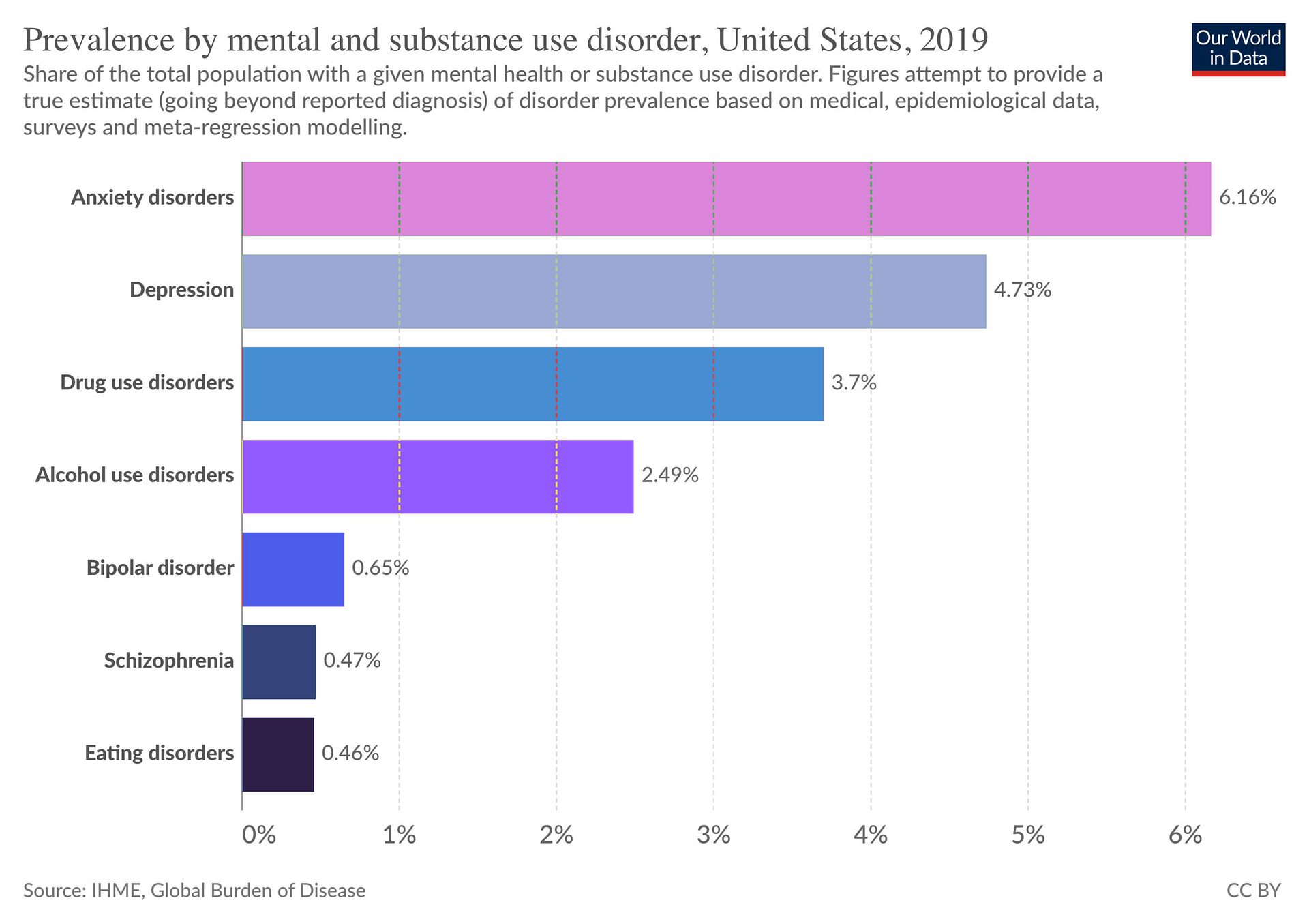 2. The largest number of people suffer from anxiety disorders, estimated at around 4% of the population.